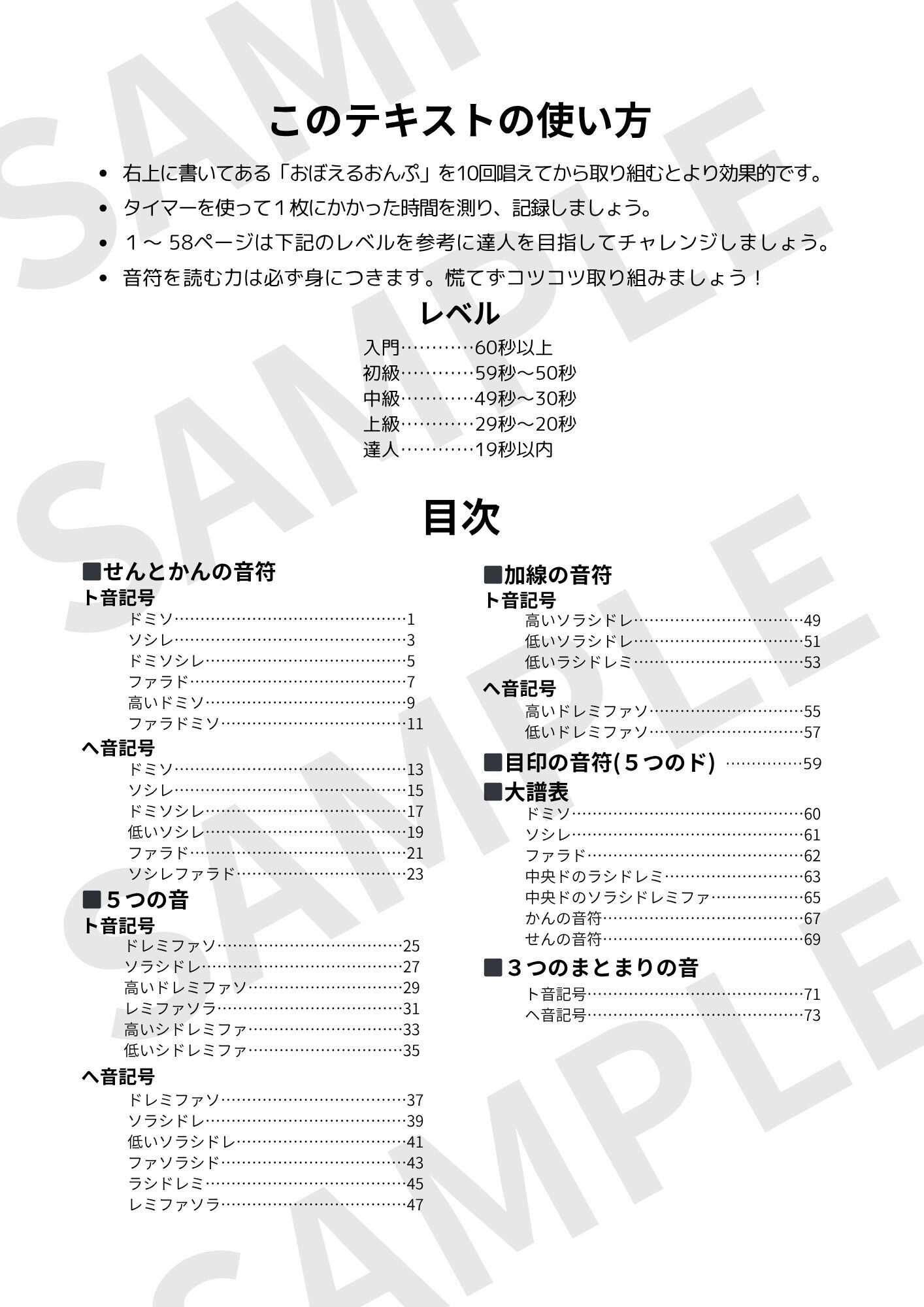 【カラー】おんぷプリント全74枚pdf【使い方・目次付き、ページ番号あり】